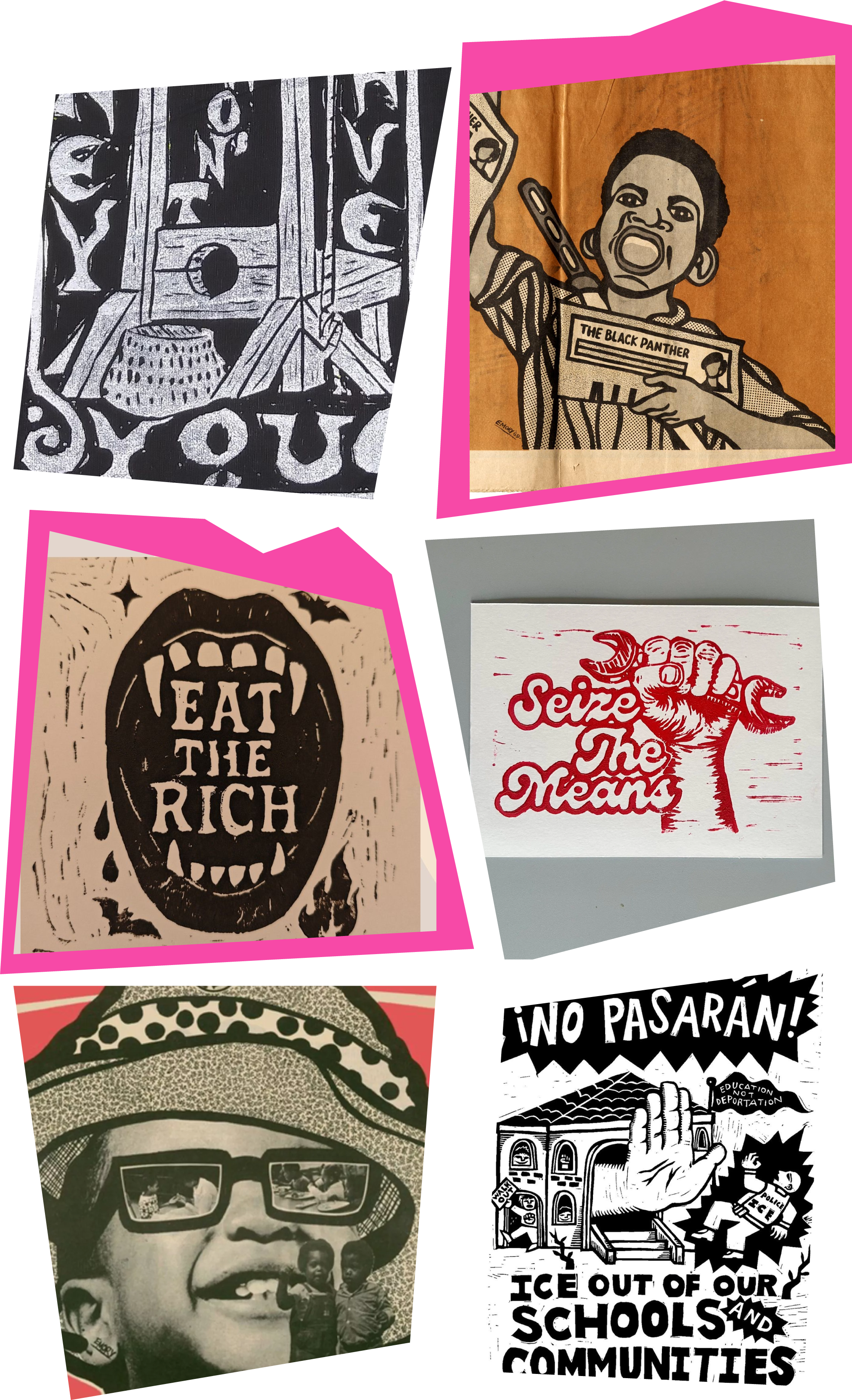Modern block printing builds on these traditional techniques by incorporating new materials and modern tools. Compared to the more traditional methods using hand-carved wooden blocks and natural dyes, contemporary artists are more likely to use rubber or linoleum. Block printing has increasingly become more accessible, serving as a low cost method of mass producing and sharing prints. The process of producing and disseminating these handmade prints, and all of the social engagement that fosters, is inherently at odds with anything shed by mass industry and capitalist means of production. Analog printmaking is contrarian, and contrarianism can quickly become resistance.